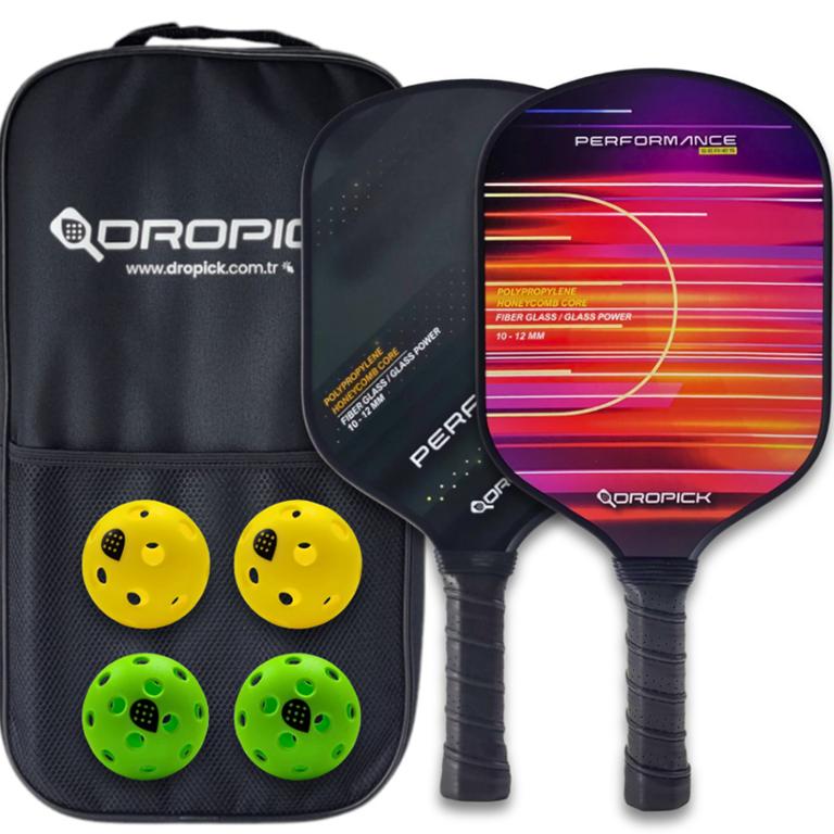 Uluslararası onaylı pickleball raket seti. Fiber Foro 2 raket 4 top ve taşıma çantası